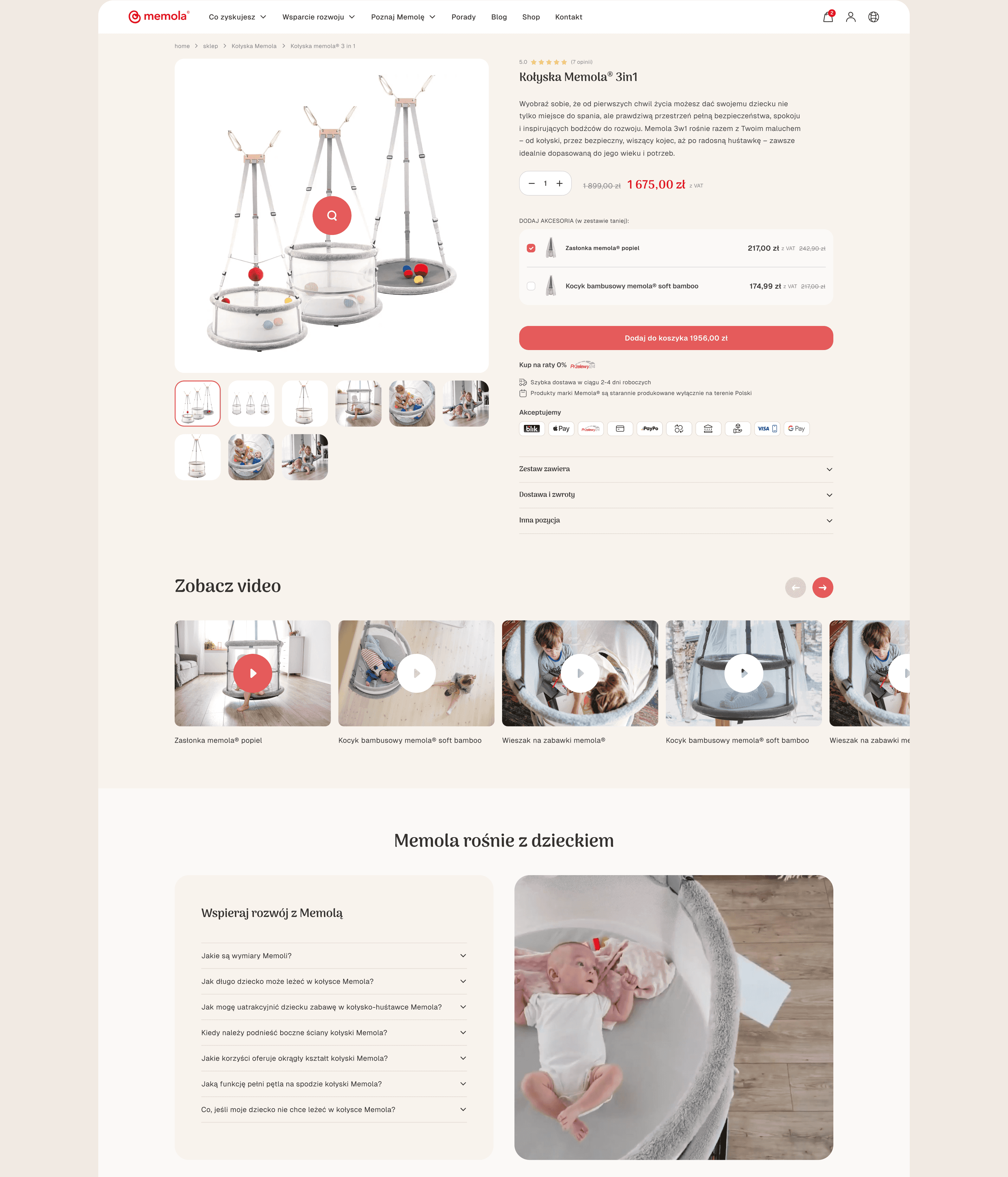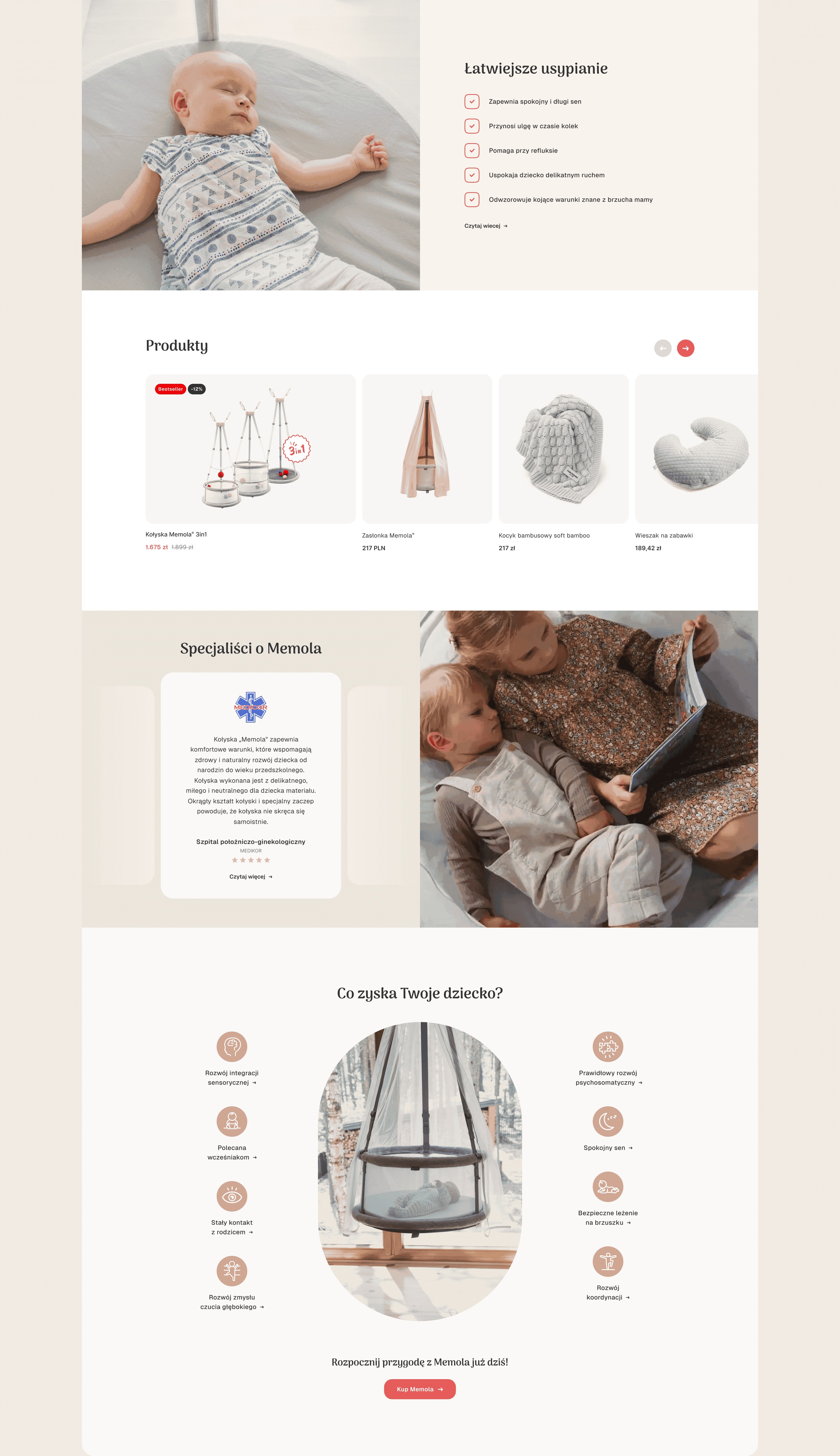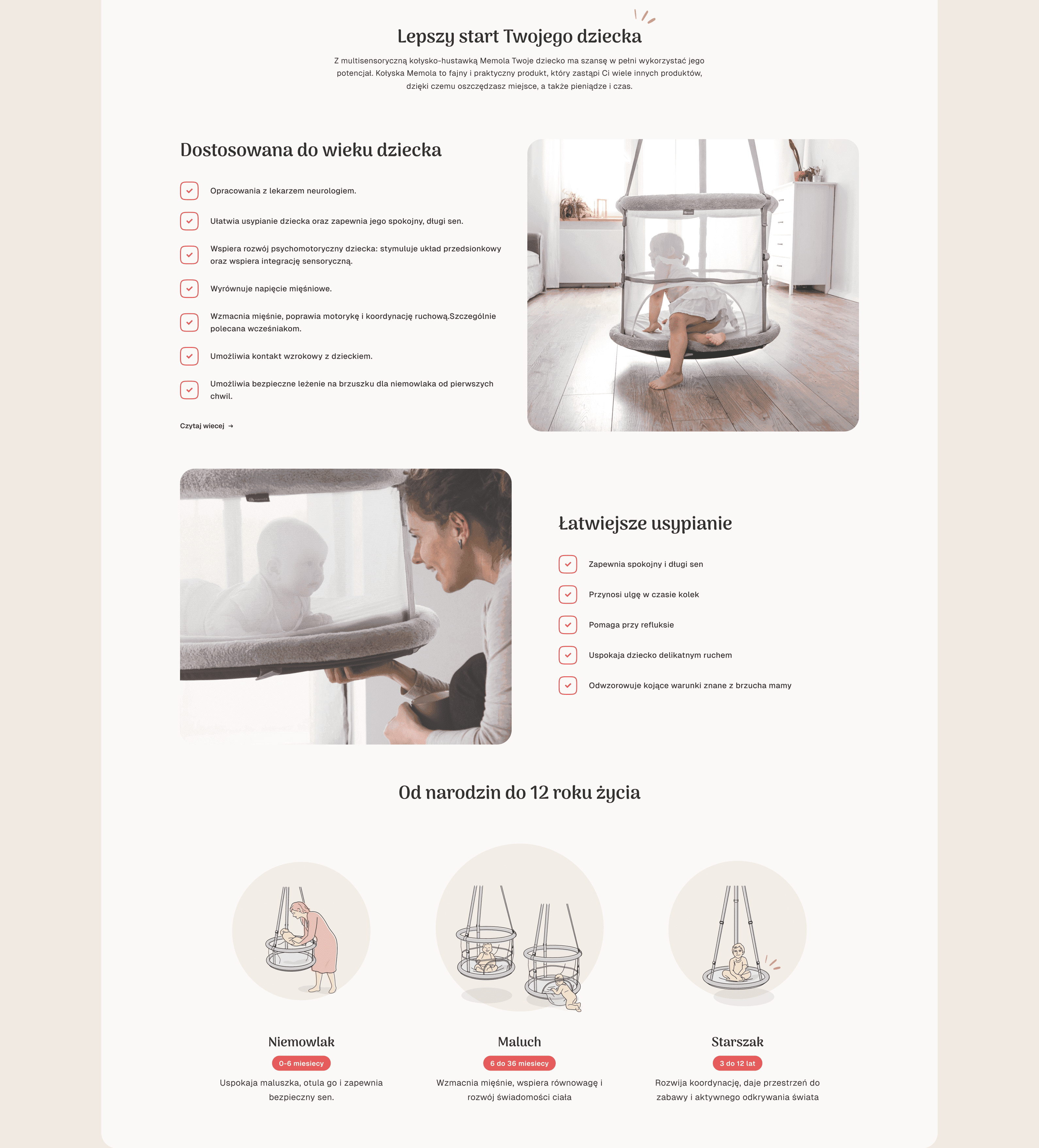 We created a modern and airy visual design that highlights the unique Montessori-inspired cradle-swing. We focused on a clear structure and intuitive presentation of benefits for parents. We also implemented a complete online store: fast, responsive, and ready to scale, with a smooth purchasing flow and tools that simplify product management.